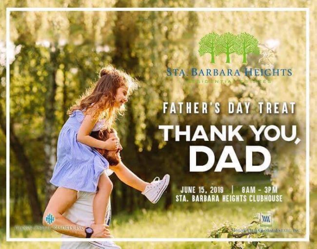 Let’s celebrate a special day that’s all about Dad! Come and join us on June 15, 2019, from 8AM to 3PM at Sta. Barbara Heights Clubhouse.